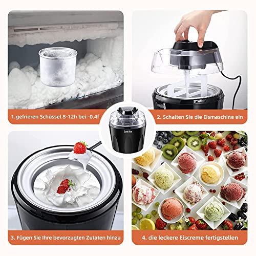 【Automatische Eismaschine】 Automatischer gefrorener Joghurt, Sorbet und Eis. Das automatische Mischpaddel wird mit einer idealen Geschwindigkeit gerührt, um sicherzustellen, dass die Melange gleichmäßig gemischt wird. Zeigen Sie Ihrer Familie in 20-25 Minuten köstliche hausgemachte Eiscreme.