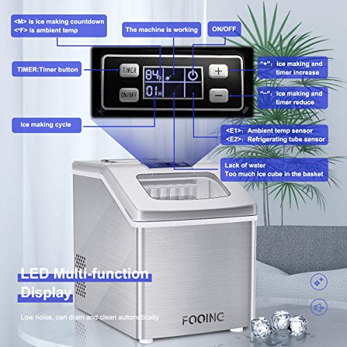 Eiswürfelbereiter Maschine FOOING Ice Maker Automatisch Selbstreinigende Eiswürfelbereiter mit 18kg/24h mit LED-Display…