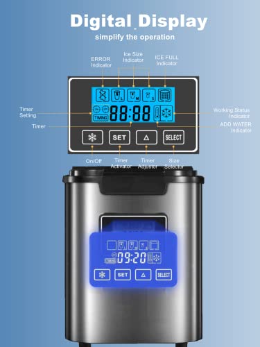 🍹 3 Grössen-Optionen: S/M/L, 3 Größen-Optionen erfüllen alle Arten von Anforderungen an Eiswürfel: Eiswürfel, Smoothies, Getränke, Notfall-Eisbeutel usw. Automatische Warnung vor Wassermangel und vollem Eiskorb. Timer. Transparentes Anzeigefenster. Schaumstoffschicht. Leise DC-Fan.