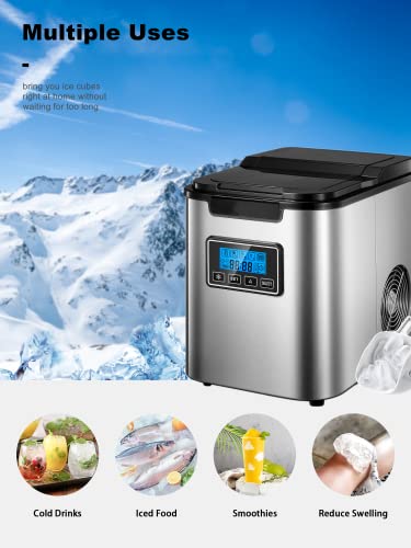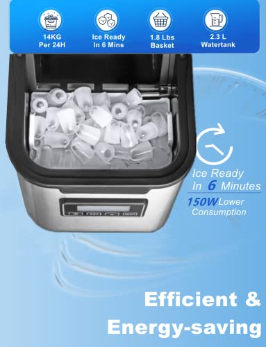🍻 Tragbar & Schnell: Eiswürfel in 6 Minuten fertig: Produziert innerhalb von 6 Minuten 9 Eiswürfel. Die maximale Produktionskapazität: 14 kg innerhalb von 24 Stunden. Wassertank (2.3L), Eiskorb (0.8kg) und eine BPA-freie Eisschaufel.