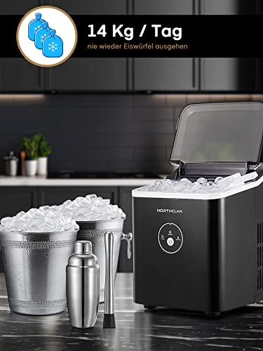 ❄️ 【Tragbar & Vielseitig】 Dank seiner kompakten Größe von 30 (T) * 24 (B) * 33 (H) cm kann der NORTHCLAN Eiswürfelbereiter überall dort aufgestellt werden, wo Sie freien Platz auf Ihrer Arbeitsplatte haben – sei es in der Küche, beim Camping, auf Reisen oder im Büro. Solange eine Stromquelle und Wasser vorhanden sind, gibt es nahezu endlose Anwendungsmöglichkeiten für NORTHCLAN.