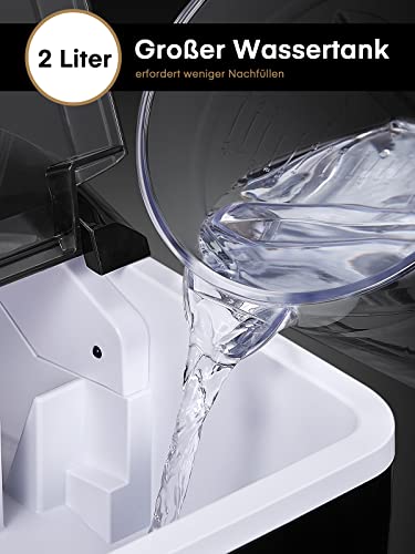 Eiswürfelmaschine Testsieger 2024, 14 kg 24 Stunden, 9 Eiswürfel in 6-8 Minuten, Gerauscharmer Betrieb, 120W Ice Maker mit Schaufel u. Korb, Eiswürfelbereiter für Zuhause, Büro