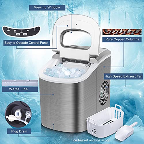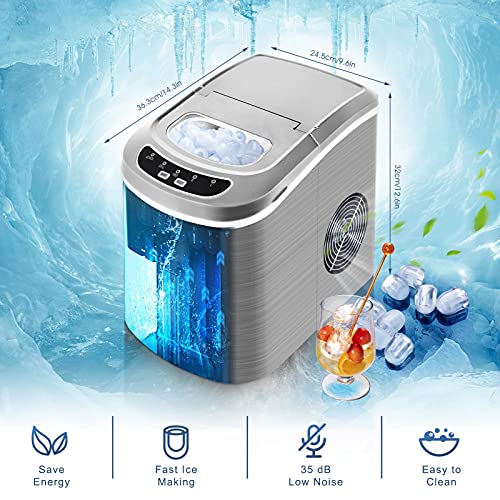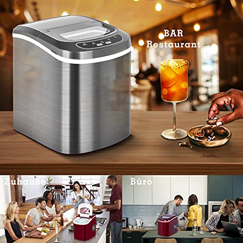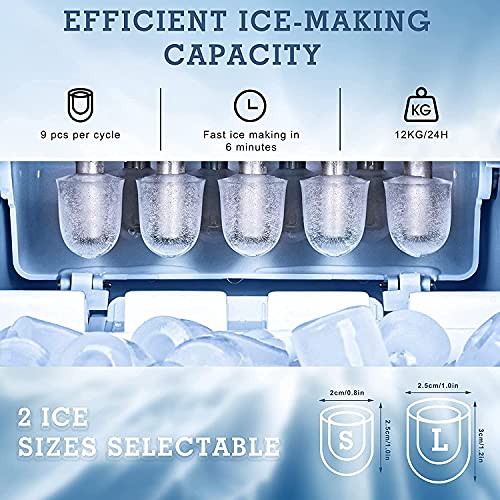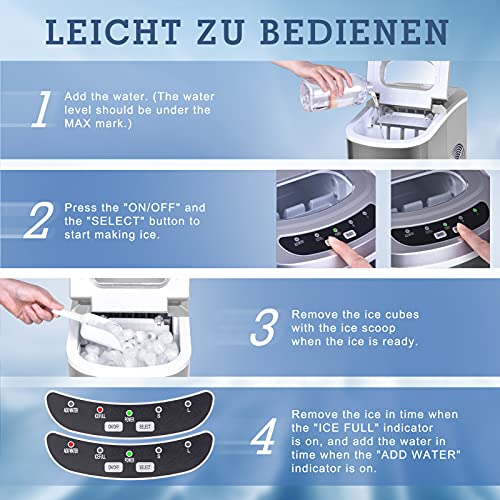 【 Effiziente Eisherstellung 】 Eiswürfelmaschine Produziert 9 Eiswürfel in hinwieder 6 to 12 Minuten, Ca. 12-15 kg Eiswürfel in 24 Stunden. Sie zwischen 2 verschiedenen Eiswürfelgrößen Entscheidung. Eiswürfelmaschine klein fasst bis zu 2.2 Liter Wasser.