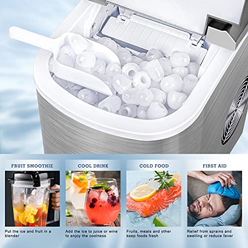 【 Leicht zu reinigen & Geräuscharm 】 Die Eiswürfelmaschine wird aus Antiblockiersystem Materialien in Lebensmittelqualität gefertigt und verfügt über eine glatte, glänzende Oberfläche und eine nützliche Ablassschraube an der Unterseite der Maschine für eine mühelose Reinigung. Geräuschpegel von hinwieder 42dB, damit Ihre tägliche Paper/Unterhaltung, Ihre Familie oder Gäste minus gestört werden.