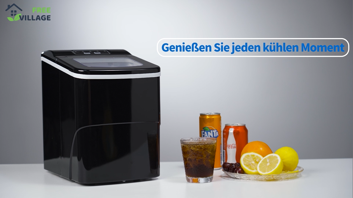 ❄ [KOMPAKT UND VIELSEITIG EINSETZBAR] Die tragbare Eismaschine FREE VILLAGE hat die Maße 31,3(T)*22,2 (B)*32,0(H) cm und wiegt 7,0 kg. Mit seinem tragbaren und kompakten Design nimmt dieser tragbare Eisbereiter wenig Platz ein und eignet sich für viele Gelegenheiten. Wann immer und wo immer Sie sind, das Eis ist da. Sie können es perfekt für zu Hause, Partys im Freien, Bar, Teestube, Karaoke, Küche und Büro verwenden. Genießen Sie den kühlen Moment mit Ihren Freunden und Familien.