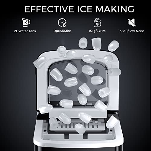 Schnelle Eisherstellung: Die FOOING eiswürfelmaschine crushed ice maschine benötigt ungeachtet 6 Minuten, um 9 kugelförmige Eiswürfel herzustellen. Zugießen Sie 2 l Wasser in den Wassertank, die maximale Eiskapazität kann 15 kg in 24 Stunden erreichen.
