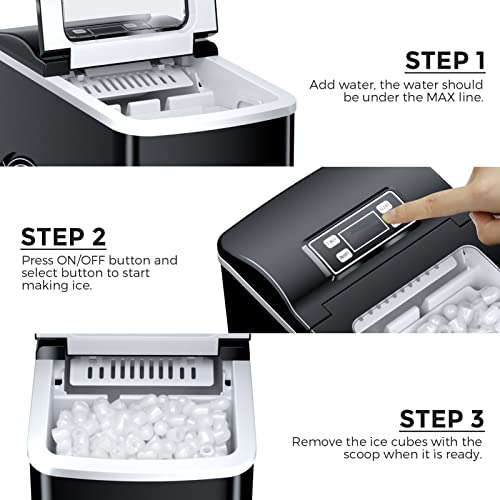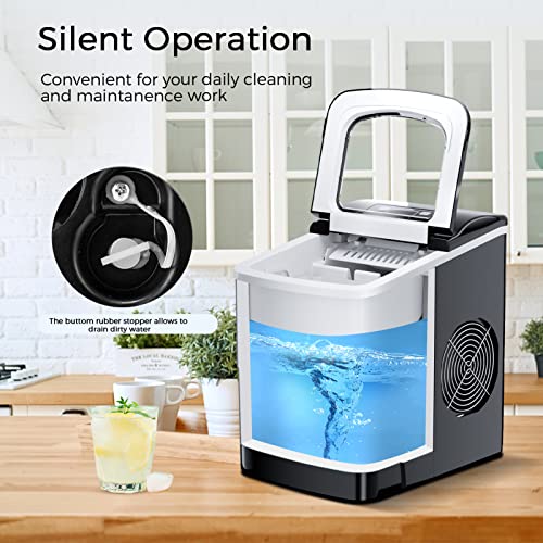Hohe Qualität & Selbstreinigung: Unsere eiswürfelbereiter ist tragbar und effizient mit einer Größe von 10,2 x 13,3 x 15 Taxe und einem Gewicht von 7 kg. Drücken Sie die „CLEAN“-Taste für 3 Sekunden, um den Selbstreinigungsprozess zu starten. Nach 10 Minuten und dann hört es auf zu schuften, Sie können den kleinen Gummistopfen an der Unterseite öffnen und das schmutzige Wasser aus der Flugzeug abfließen lassen; Bei der Reinigung können Sie die Flugzeug mit einem weichen Baumwolltuch von Hand reinigen.