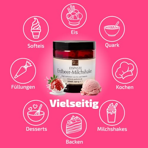 LEICHT ZU DOSIEREN UND SCHNELLE ZUBEREITUNG: statt dessen eine 1000 g Eis-Portion werden ca. 50 g Eispaste benötigt. So bekommst du jeglicher 250 g Eispaste rund 108 Kugeln leckeres Erdbeer-Milchshake Eis. Eis selbst entwickeln ist so einfach und schnell zubereitet.