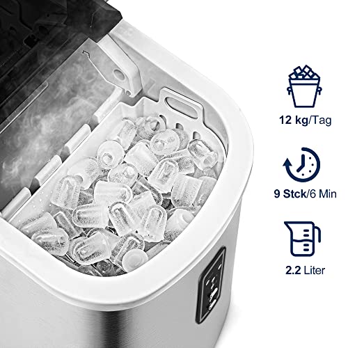 Euhomy Eiswürfelmaschine, Eiswürfelbereiter für 12 kg 24h, 9 Würfel in 6-8 Min, Ice Maker für Zuhause und die…