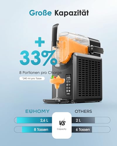 EUHOMY Slush Maschine 2.6L für zuhause, mit 5 voreingestellten Programmen: Slushie, Cocktail, Milchshake, Frappé, Wein, Keine Eiswürfel erforderlich, Selbstreinigung und Kindersicherung