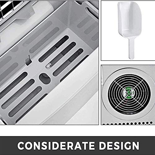 [Effiziente Eisherstellung] Diese tragbare Eismaschine produziert 24 klare Eiswürfel in 13-25 Minuten (sklavisch von der Raumtemperatur) 40 lbs (18 kg) entsprechend alle 24 Stunden. Leiser Abgasturbolader benötigt wenig Energie zum Einfrieren. Vergrößerte transparente Fenster ermöglichen jederzeit eine einfache Beobachtung