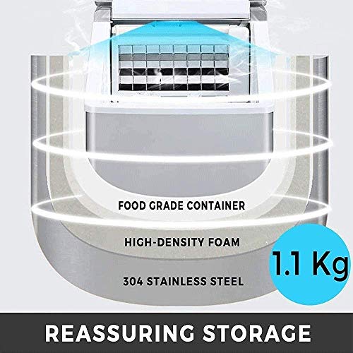 [Qualitätssicherung] 3-Schicht-Tank. Hochwertiges Edelstahlgehäuse, einfache Reinigung, robust und langlebig. Behälter in Lebensmittelqualität für bis zu 1,1 kg Eis. Schaumstoff mit hoher Dichte hält die Temperatur und isoliert Wärme