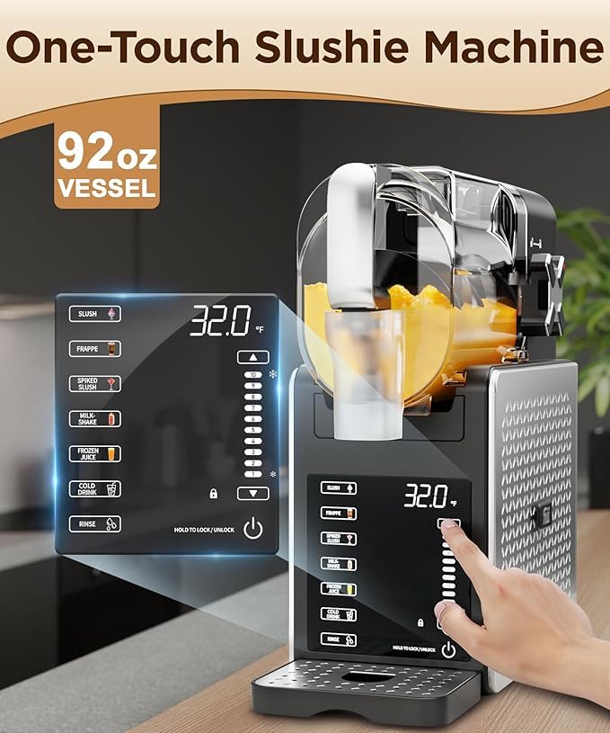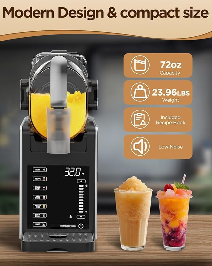 Fiii Slushie-Maschine 92 oz, Slushy-Maschine für Zuhause, 6 voreingestellte Programme, leiser Betrieb, LED-Anzeige, automatische Reinigung, kein Eis erforderlich, perfekt für Milchshakes, Margarita-Sm