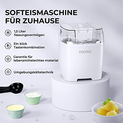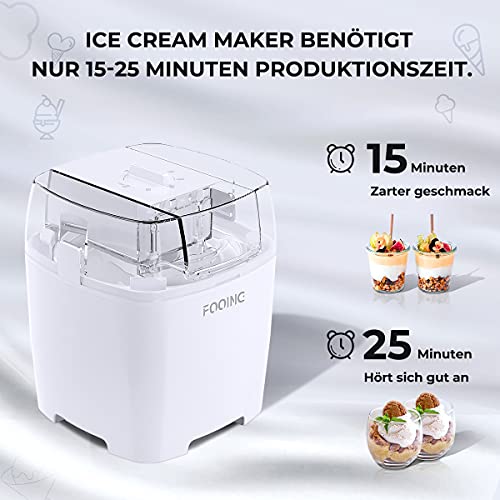FOOING Eismaschine Speiseeisbereiter 1,5L mit Drehknopf (5 bis 30 Minuten), Edelstahl-Heim-Speiseeismaschine, Geeignet…