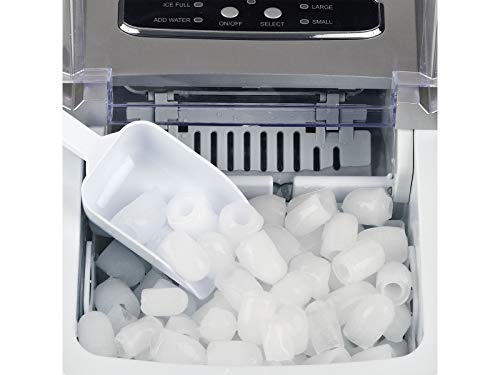 2 Größen dieser Würfel einstellbar: klein außerdem riesig; Produktionskapazität: 12 kg in 24 Stunden (ca. 1400 Würfel). Fassungsvermögen des Wasserbehälters: 2 l. Fassungsvermögen des Eisbehälters: ca. 700 g. Automatische Außerbetriebnahme angrenzend leerem das nasse Element oder Eis. Automatischer außerdem leiser Fabrik. Abgasturbolader dieser neuesten Lebensabschnitt, dieser Gas R600a, 21 g. Zugabe: Eisschaufel.