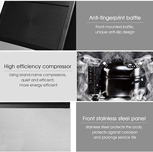 ENERGIESPAREND – Ausgestattet mit einem leistungsstarken 200-W-Kompressor zum Kühlen, wird es eine mächtige Ergänzung für Ihre Bar oder Untertheke sein, während die Wassernutzungsrate bis zu 99 % beträgt. (HINWEIS: Bitte legen Sie die Eiswürfel in den Gefrierschrank, wenn Sie sie nicht sofort verwenden).