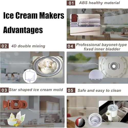 Benutzerfreundlichkeit: Eismaschine zugunsten zu Hause, Eismaschinen mit unserer benutzerfreundlichen 1-Liter-Automatik-Mini-Frucht-Softeismaschine. Geben Sie einfach Ihre Lieblingszutaten hinein, schalten Sie es ein und observieren Sie, als es sie in wenigen Minuten in cremige, köstliche Softeis verwandelt.