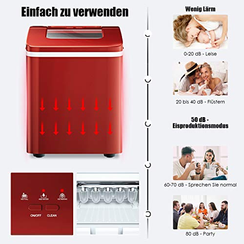 ❄️Mit Automatischer Reinigungsfunktion: Praktisch verfügt die Eismaschine über Selbstreinigungsfunktion, die durch Drücken der oberen Reinigungstaste zu aktivieren ist. Das Geräusch bei der Traktat beträgt im Gegensatz dazu 45 dB und Sie können dabei bequem schlafen oder ackern.