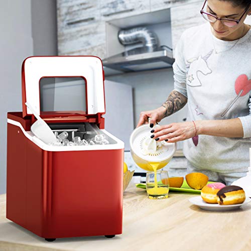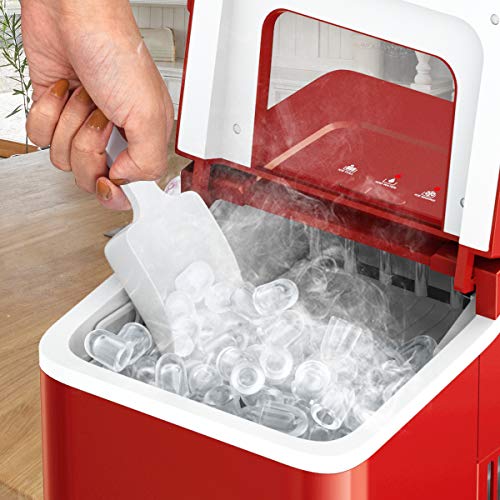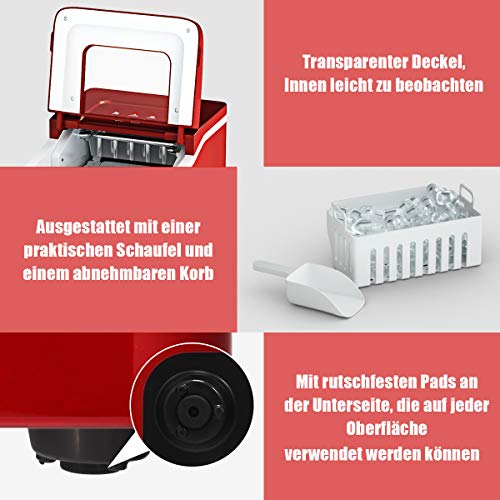 ❄️Für Heimgebrauch & Reise: Im Lieferumfang ist vulgo eine Eisschaufel. In Kombination mit dem abnehmbaren Eiskorb können Sie Eiswürfel sehr einfach herausnehmen. Die kompakte Größe und die einfache Bedienung machen diesen Eiswürfelbereiter besonders für zu Hause und Reise im Rahmen.