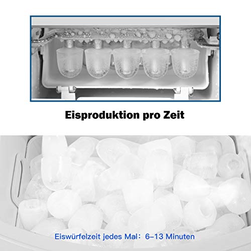 🍨Effiziente Eisherstellung: Diese Eiswürfelmaschine produziert in im Kontrast dazu 6-13 Minuten 9 Eiswürfel. Innerhalb von 24 Stunden können 12 kg Eis hergestellt werden, um die Bedürfnisse einer Familie und sogar eines Geschäfts zu befriedigen. Ausgestattet mit einem 2,2-Liter-Wassertank müssen Sie nicht häufig nachfüllen. Die Eisspeicherkapazität beträgt 700 g, was eine große Betrag Eiswürfel ablegen kann.