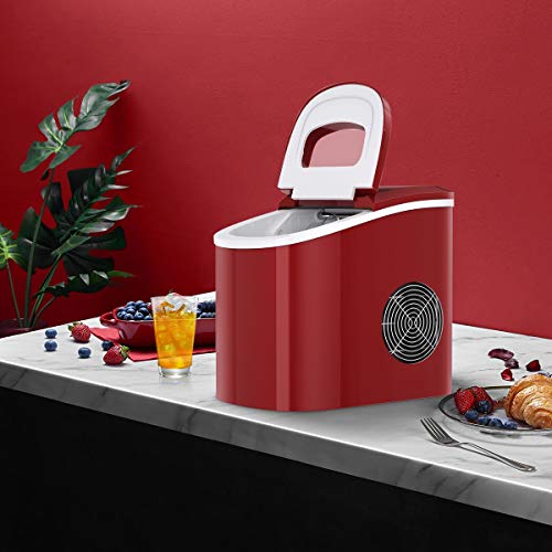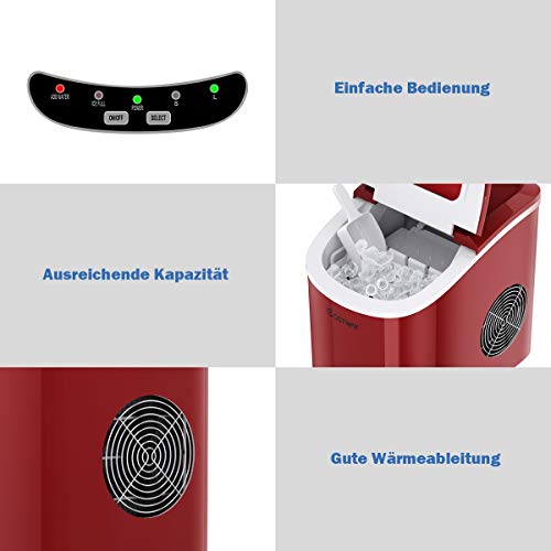 GOPLUS Eiswürfelmaschine, 12kg in 24 Std. Eiswürfelbereiter mit 2 Eiswürfel-Größen & 2,2 Liter Wassertank & Eiswürfelschaufel, Ice Cube Maker Zubereitung in 6-13 Minuten, 24 x 36 x 33 cm (Rot)