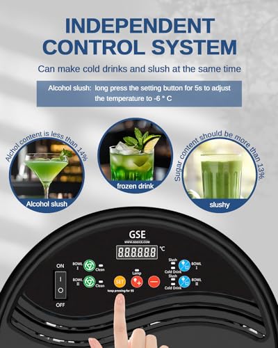 ✅【Kommerzielle Slushy-Maschine】✅ – Einfacher und leicht verständlicher unabhängiger Schaltknopf, der Härteknopf kann den Härtegrad des Slushes einstellen. Ideal für die Zubereitung von Margaritas und Slush. Der rückfedernde Griff ist bequem zu bedienen und schont Ihr Handgelenk. Nicht verstopfende Axiallüfter und große Lüftungsöffnungen ermöglichen lange Laufzeiten. Die vier Fußpads an der Unterseite sind gut für die Pufferfunktion ausgelegt. GSE Slushy-Maschine für gefrorene Getränke ist perfekt für Familienfeiern, Geburtstagsfeiern, Hochzeitsfeiern, etc.