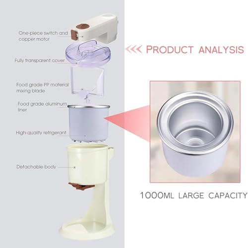 【Gesunder Geschmack】: Im Abmachung zu anderen Eis- oder Joghurtsnacks können Sie 100 % Obst sofort umrühren, um ein gesundes Dessert zu kreieren, ohne zusätzliches Fett, Zucker oder Konservierungsstoffe hinzuzufügen. Genießen Sie einen Genuss ohne schlechtes Gewissen mit unserer Eismaschine.