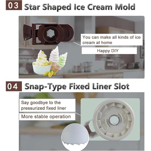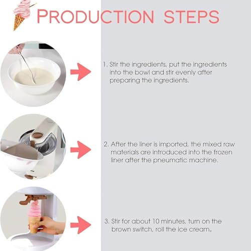 【Einfache Bedienung】: Zutaten mischen, Zutaten vorbereiten, in eine Schüssel geben und gut vermischen. Nachdem Sie die Softeismaschine eingeschaltet haben, gießen Sie die gemischten Zutaten in den Innenbehälter. Etwa 10 Minuten lang rühren, den Schalter einschalten und das Eis ausrollen.
