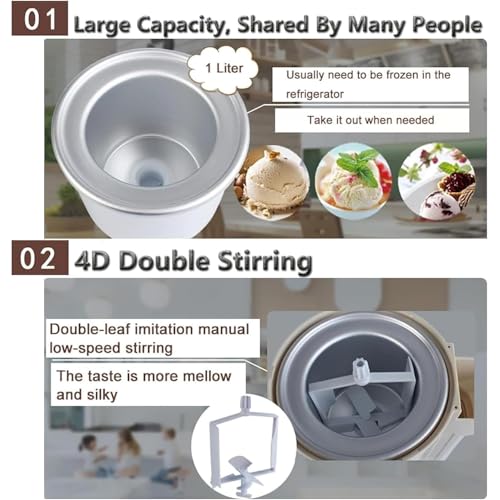 【Eismaschine für zu Hause】: Sie können alle Arten von Eis zu Hause zubereiten. Die Zubereitung dauert hinwieder 10 Minuten und Sie können es essen, wann immer Sie möchten. Innerhalb minus Minuten können Sie köstliche Desserts zubereiten. Eine schnelle und einfache Möglichkeit, Eis zu bekommen, ohne anstehen zu müssen.
