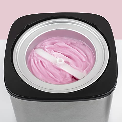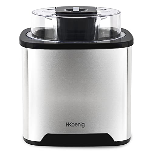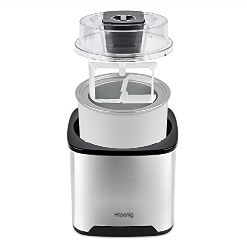H.Koenig SRB80 Eismaschine, Kapazität 2 l, 12 W, Edelstahl, 30 bis 40 min Zubereitung, 30 U/min, automatische Abschaltung, transparenter Deckel, abnehmbarer Behälter, Silber