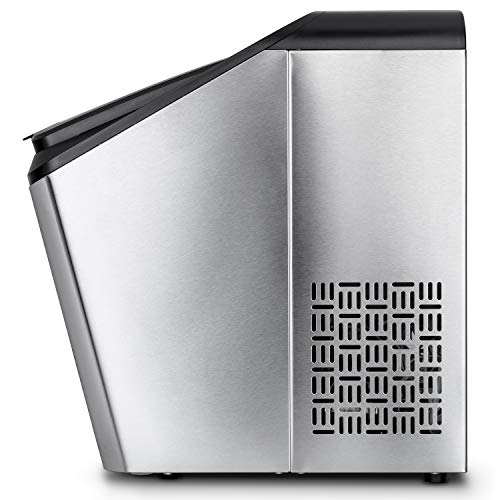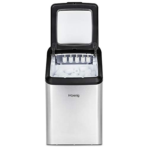 H.Koenig Eiswürfelbereiter KBP40 15 kg in 24 Stunden, Schnelle Produktionszeit 9 min, 2 Eiswürfelgrößen, Wasseranschluss möglich, Kapazität 2,8 L, Gehäuse aus Edelstahl, Eiswürfelschaufel