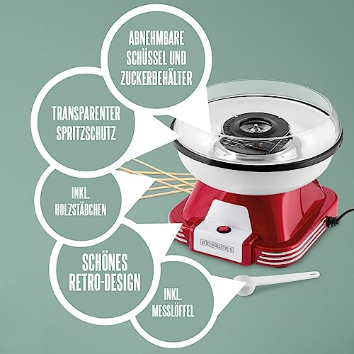 HEINRICHS Zuckerwattemaschine, elektrisch, Zuckerwattemaschine Set für Zuhause, Extra Große Schüssel,Retro Cotton Candy,schnell Einsatzbereit, Leichte Reinigung, inkl.Messlöffel, 500W Motor Heinrich´s