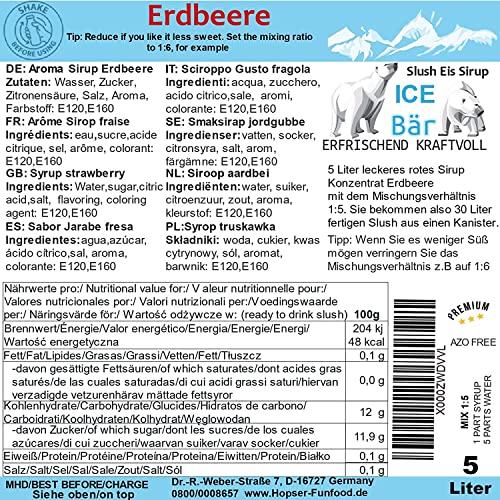 ICE BÄR Slush Sirup 12 fruchtige Sorten 5 Liter Konzentrat AZO FREI | Geschmack Erdbeere | Slushy Maker Ice für Eis Maschine zum Selbermachen Getränkesirup