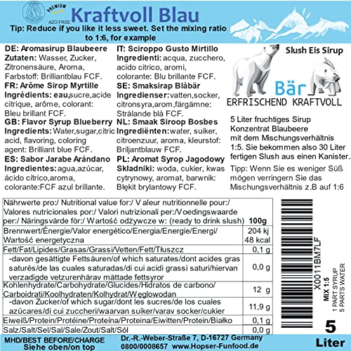 ICE BÄR Slush Sirup 12 fruchtige Sorten 5 Liter Konzentrat | Geschmack Blaubeere | Slushy Maker Ice für Eis Maschine zum Selbermachen Getränkesirup
