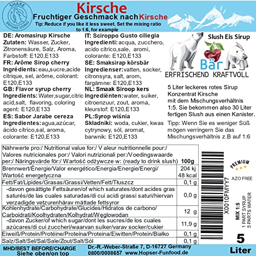 ICE BÄR Slush Sirup 12 fruchtige Sorten 5 Liter Konzentrat | Geschmack Kirsche | Slushy Maker Ice für Eis Maschine zum Selbermachen Getränkesirup