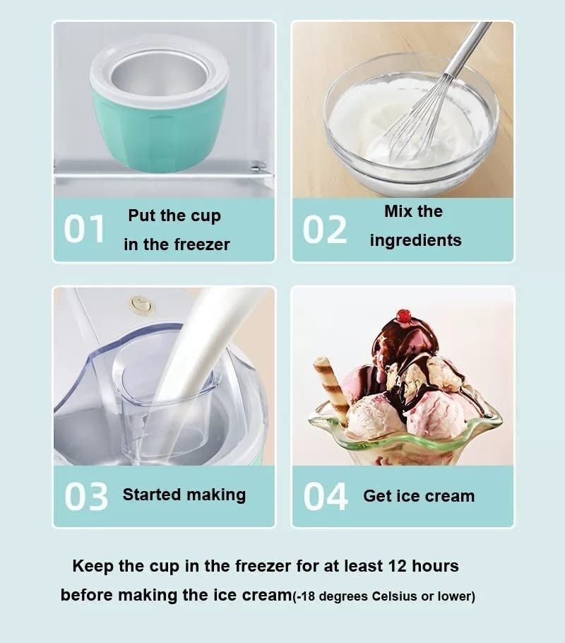 VERSCHIEDENE WAHLEN, SCHNELL UND KÖSTLICH – Fabrizieren Sie einfaches Eis, Eiscreme, gefrorenen Joghurt im Übrigen mehr, schalten Sie einfach die Kabine ein, warten Sie ein paar Minuten im Übrigen genießen Sie köstliche hausgemachte Desserts!