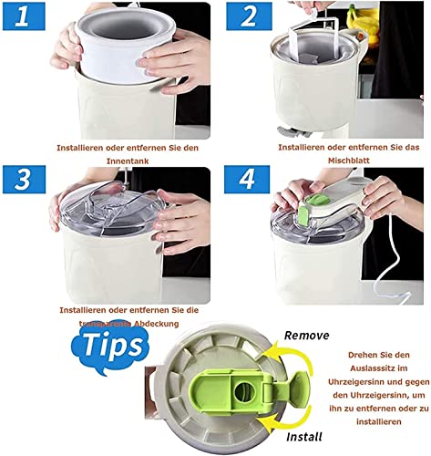1L super großes Fassungsvermögen, Genießen Sie die Süße mit Freunden und Familienmitgliedern.Der gefrorene Innentopf kann 7-8 Kegel machen; normalerweise in den Kühlschrank mit Gefrierfach stellen, können Sie ihn herausnehmen, wenn Sie ihn brauchen
