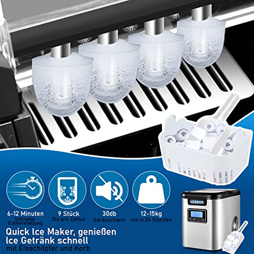 🥂【Smart Timing】LED-Anzeige, können Sie das Eis machen Zeit nach Ihren Bedürfnissen, mit niedrigem Wasser Alarm, volles Eis Alarm, intelligenter und bequemer Energieeinsparung.