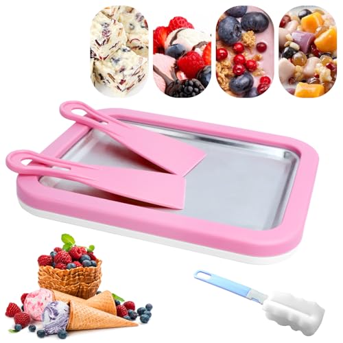 JOLIGAEA Eisplatte zum Eis Machen, Eisplatte Eis Rolls zum Eis Machen DIY, Ice Cream Machine rolls maker mit 2 Spateln, Edelstahl Eiscreme Maker für Sorbet, Frozen Yogurt, Gelato – 17,5 x 22,5 cm