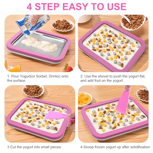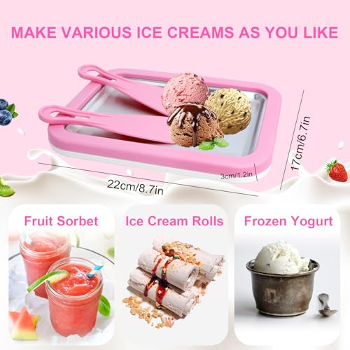 🍨【ÜBERRASCHUNGSGESCHENK】: Dies ist eine lustige Eiscreme-Roller-Pfanne, die perfekt für Kinder zum Selbermachen ist, keine Steckdose benötigt, keine Sicherheitsrisiken birgt und einfach zu bedienen ist. Sie fördert Kreativität und Spaß in der Küche. Es ist ein ideales Geschenk für jedweder Arten von Festen und Gelegenheiten, Sie können es Ihrem Derivat zum Kindertag schenken und den DIY-Spaß mit Ihrem Derivat genießen.