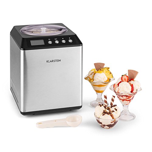 Klarstein Vanilla Sky – Eismaschine, Eisbereiter, Speiseeismaschine, Kühlhaltefunktion, LED-Display, Timer, Edelstahl, einfache Reinigung, 180 Watt, 2 Liter Fassungsvermögen, Silber