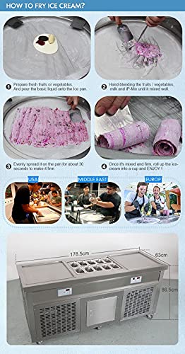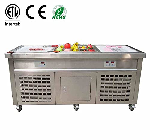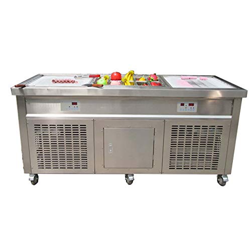 CE-Zertifikat, doppelte quadratische Eispfannen + 10 Vorkühlbehälter, Pfannengröße: 52x52cm. 220V, 50HZ, 2100W, UK- oder EU-Stecker.