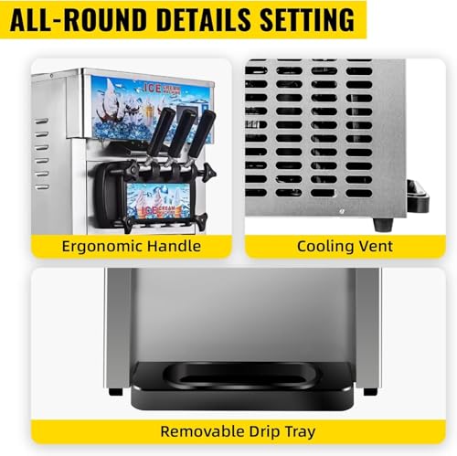 Vielseitige Anwendung: Diese weiche Eismaschine wurde für Vielseitigkeit entwickelt und eignet sich ideal für die Herstellung einer Vielfalt von Eiscreme-Leckereien, einschließlich Tüten, Waffeln und Kuchen. Es ist eine perfekte Anhang zu Eisdielen, Cafés, Getränkebars und kleinen Essensständen, die jedes kommerzielle Umfeld bessern.