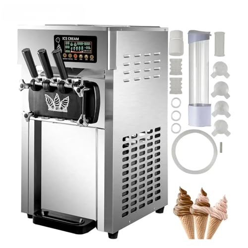 Kommerzielle Eismaschine, 18 l/h, 3 Geschmacksrichtungen, sanfter Service, 1200 W, Kommerzielle Softeismaschine mit LCD-Panel, automatische Reinigung für Joghurt, Kaffee, Snackbar, Restaurant, Markt