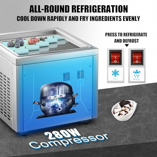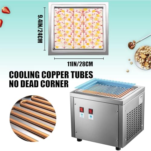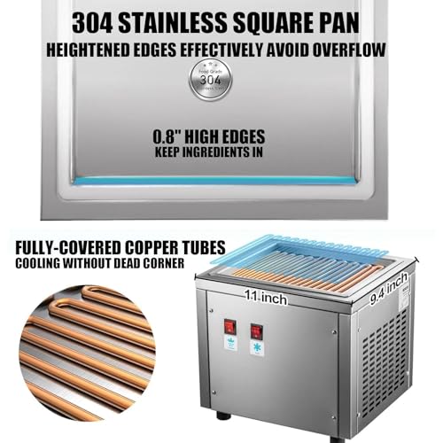【Effizientes Eisrollen】: Diese Eiscreme-Rollmaschine ist mit einer großen quadratischen Kühlplatte und gleichmäßig verteilten Kupferkühlrohren ausgestattet, um eine hervorragende Kühlwirkung zu gewährleisten. Es kann das Produkt auf -25 bis -30 °C oder darunter Abschrecken und so ein Produkt schaffen, das Ihren Gaumen befriedigt.