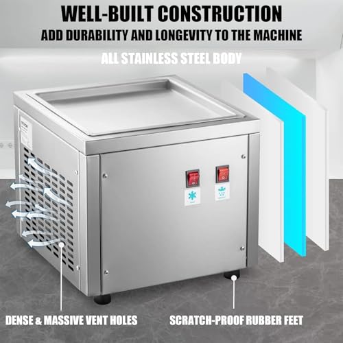 【Gut gestaltete Details】: Diese kleine und einfache Eiscreme-Rollmaschine achtet auch auf Details. Es ist mit vier Gummifußpolstern ausgestattet, um hervorragende Stabilität zu gewährleisten. Die großen Lüftungsschlitze verkleinern effektiv die Temperatur der Funktionseinheit, um Schäden durch hohe Temperaturen zu verhindern.