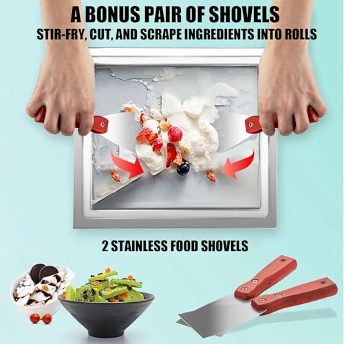 【Mehrere Anwendungen】: Die Maschine zum Ausrollen von frittiertem Eis kann verschiedene Rezepte wie Milchpulver, Saft, Milchshake, Joghurt usw. konvertieren. Sie kann alle Arten von weichem und hartem Eis, Smoothies, Eisschlamm, Schneeschlamm und geschabtes Eis herstellen