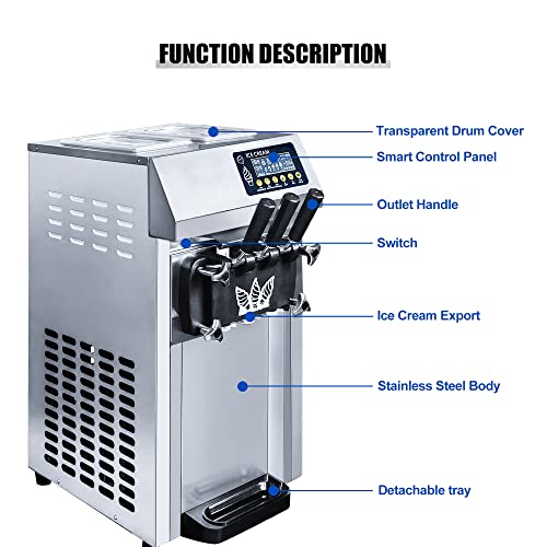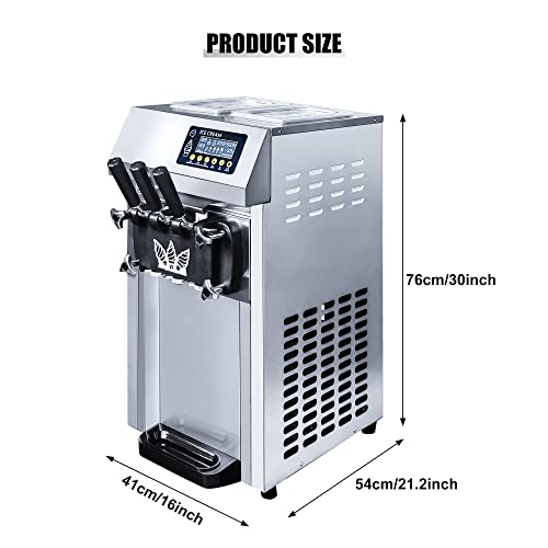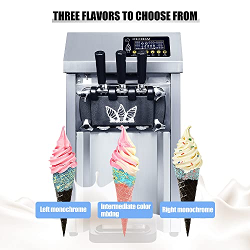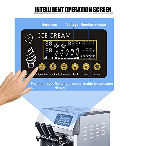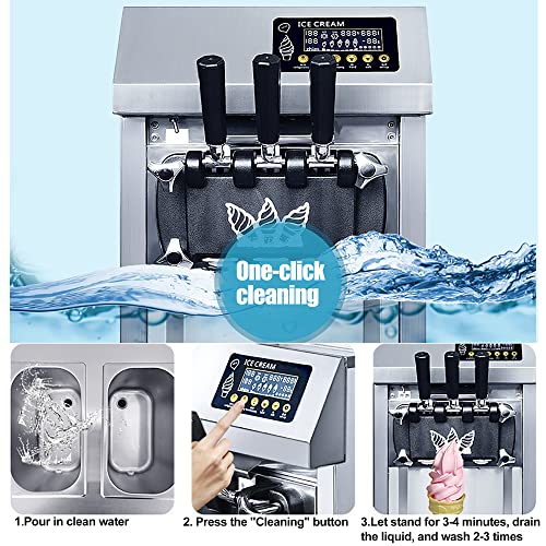 Kommerzielle Softeismaschine, 1250W Elektrische Eismaschine, 3 Geschmacksrichtungen Eismaschine, Automatische Reinigung LCD Bildschirm und Frische Funktion, für Restaurants, Dessertgeschäfte, Cafés,