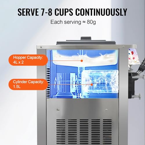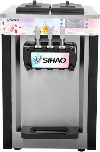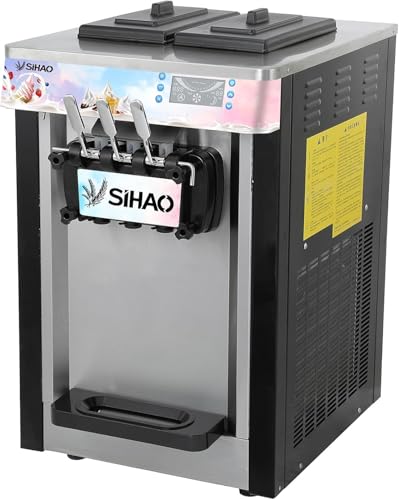 Kommerzielle Softeismaschine 1900 W Arbeitsplatte Softeismaschine 20-22 L/Std.Softeismaschine Desktop, Softeismaschine 3 Geschmack für Restaurantbar, Bars, Familien (L20AN)