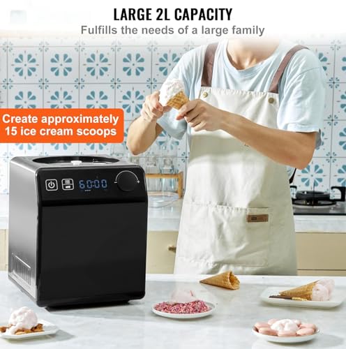 KUMlO Upright Automatic lce Cream Maker miteingebautem Kompressor, 2L No Pre-Freezing FruitYogurt Machine, Stainless Steel Electric Sorbet Maker, 4Modi Gelato Maker mit Digitalanzeige & Timer